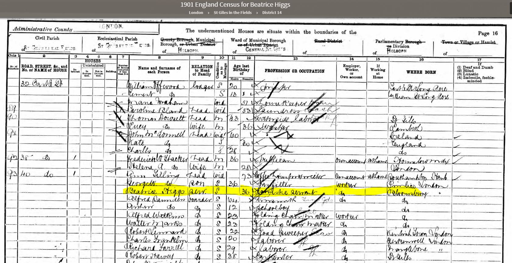 Image 589 shows her aged 36 in the 1901 census working as a servant in the Tilly family at 40 Castle Street - There’s a lot of boarders here! Need to check out Alfred Saunders 64, I’m sure we came across this family…
