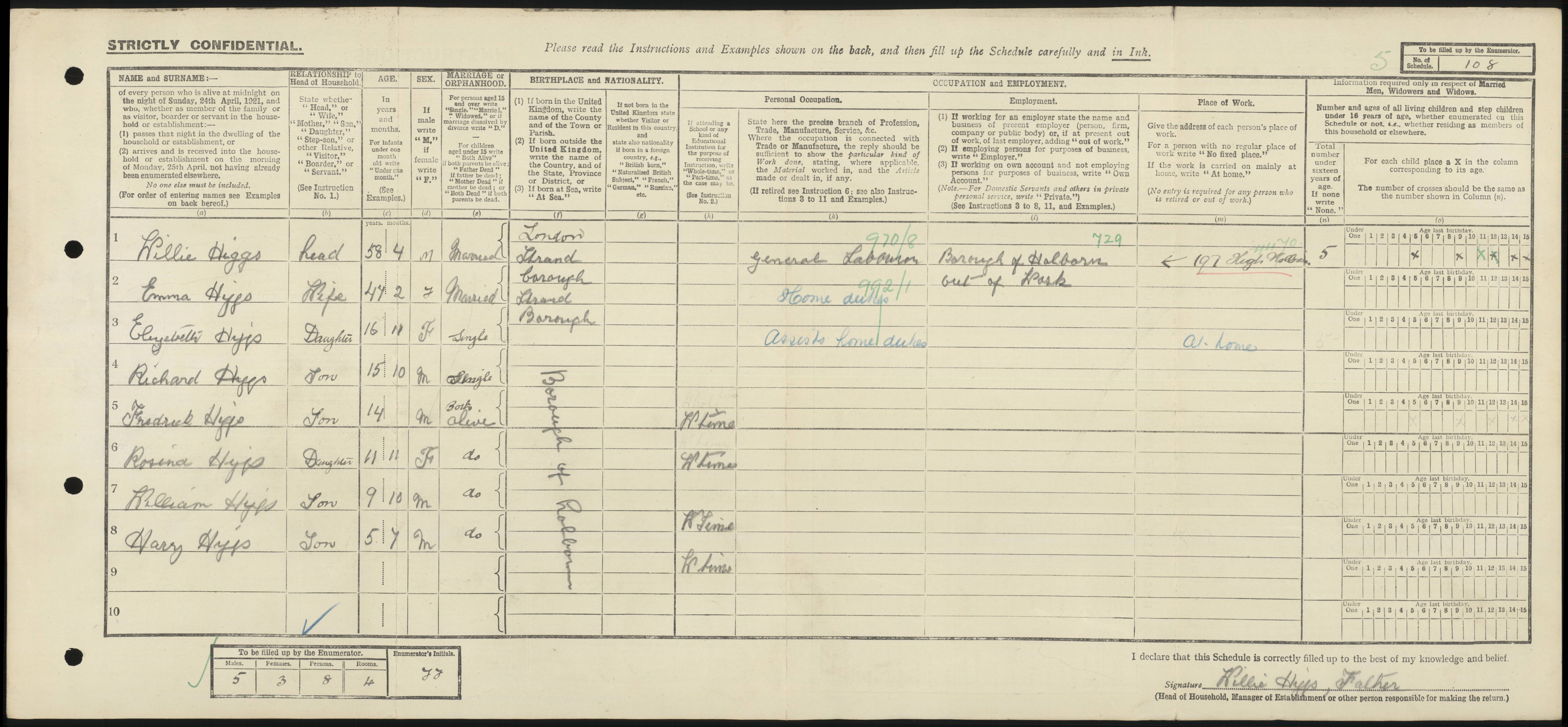 He appears at three and a half years of age on the 1911 Census. At that time the family are living at 15 New North Street, Theobalds Rd, Holborn W C