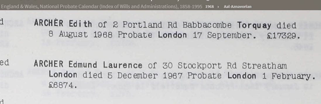 In 1953 at the age of 40 he married an Adams, in Gloucester and died in Streatham in 1967 aged just 54.