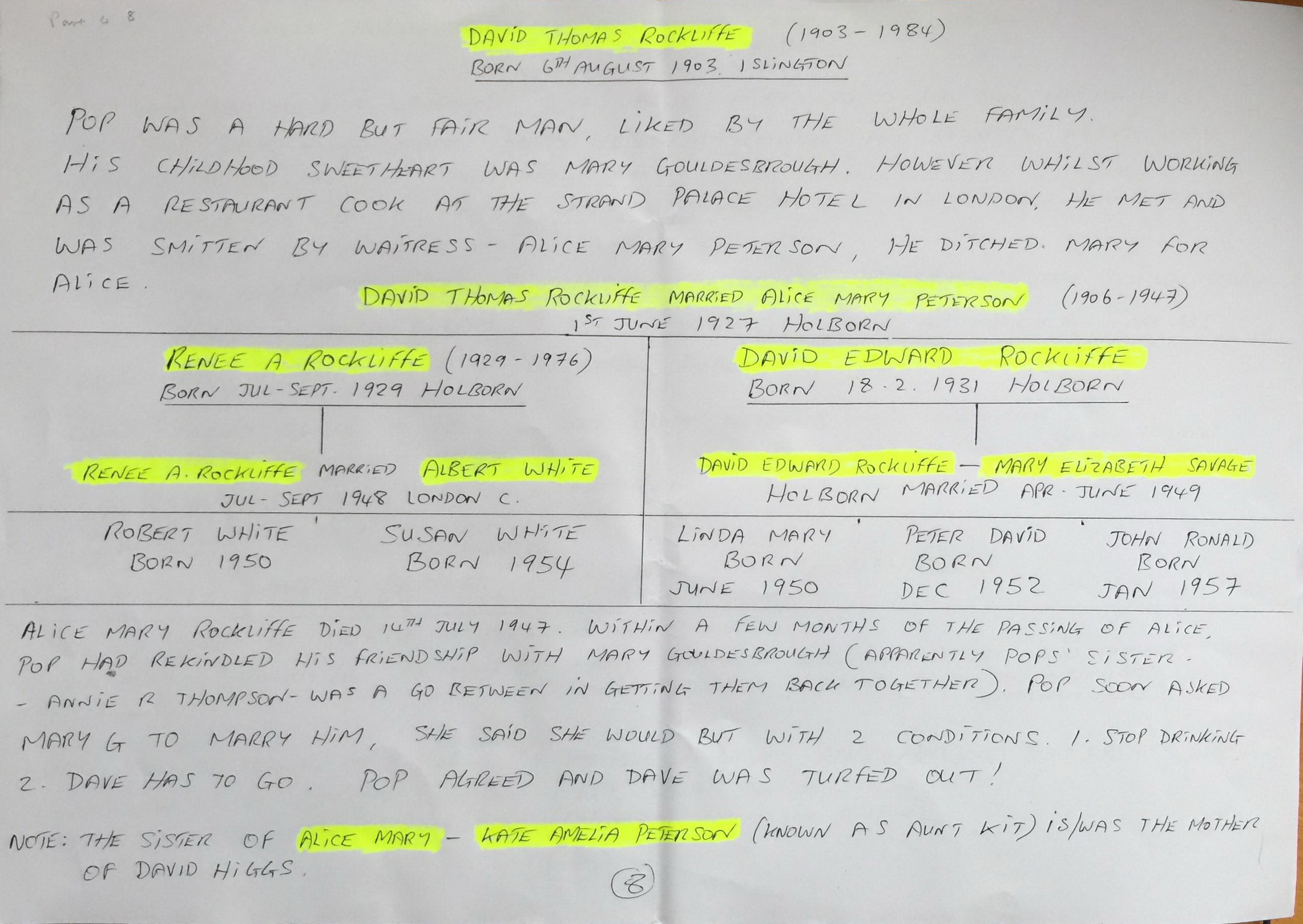 David T Rockliffe's second wife whom he married in 1948