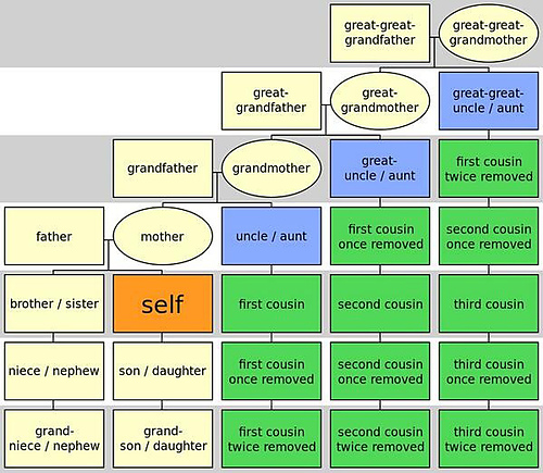 Relationships - here is simple diagram to explain all those cousins, aunts, great-aunts and second-cousins connections
