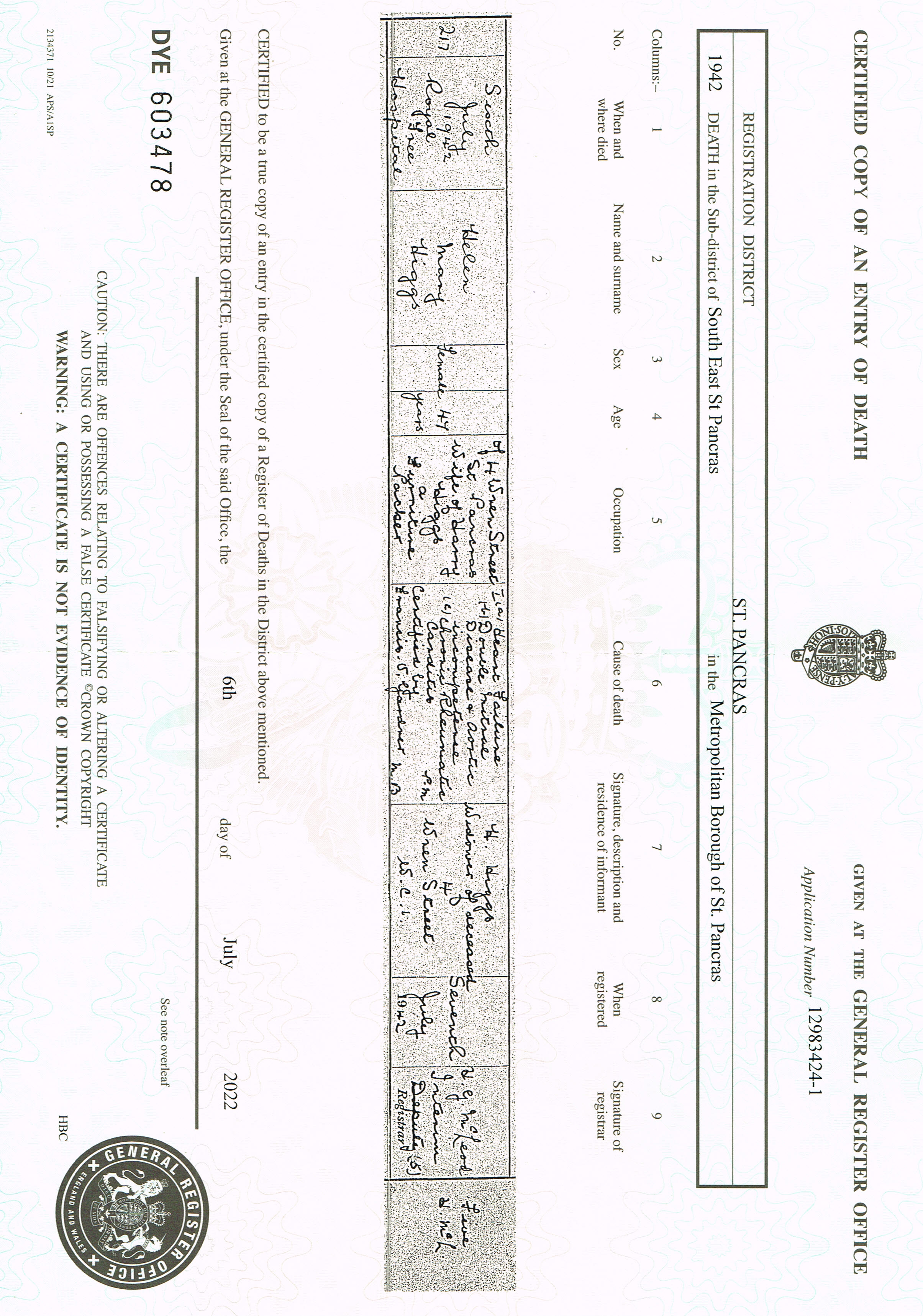 But a few years later she died at the early age of just 47 in 1942.